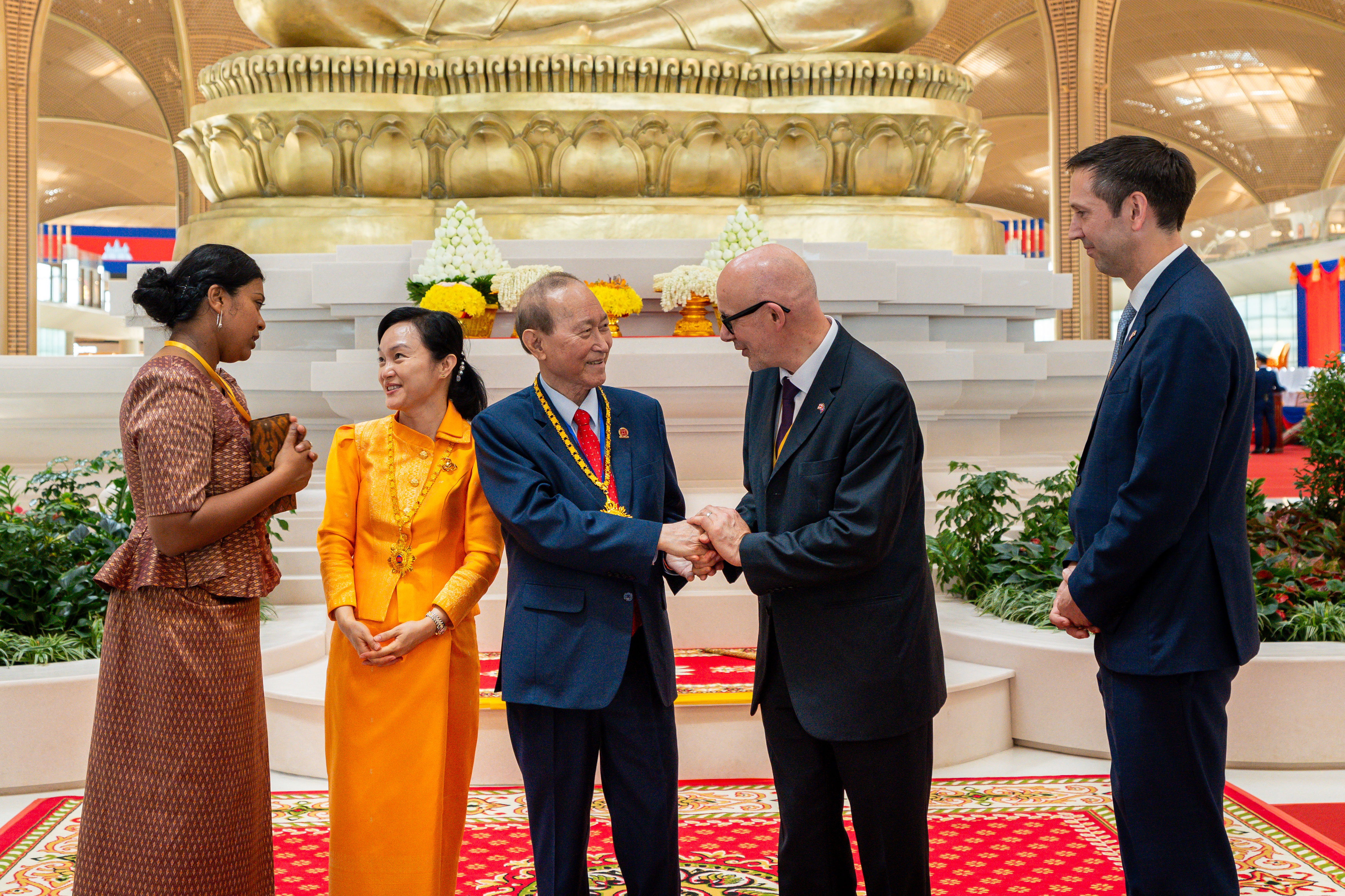 Distinguished guests included UK Trade Envoy Matt Western (Member of Parliament), and former Hong Kong Chief Executive CY Leung. Also in attendance were representatives from leading airlines, global hospitality brands such as Raffles, Marriott, and Accor Hotels, as well as the American Chamber of Commerce (AmCham Cambodia), EuroCham, and other international business networks.